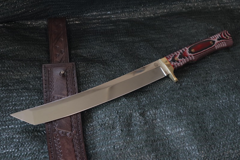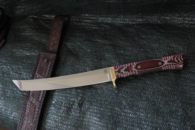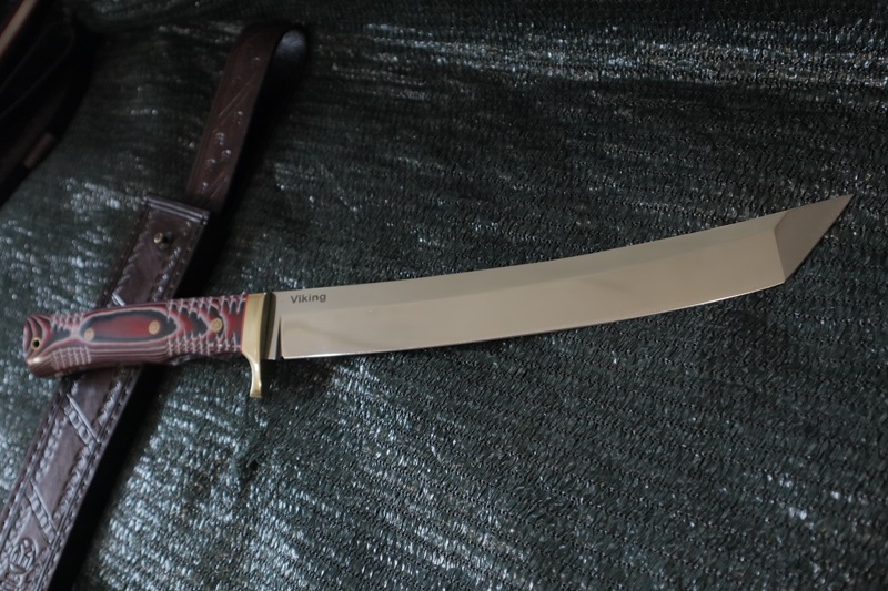 Viking/A8mod steel 60 hrc. Blade is 27 cm. and handle 15.6 cm.-Micarta . Flat grind. leather sheath. US customers should pay 15% of the price before shipping, due to two newly added taxes between the US and the European Union
