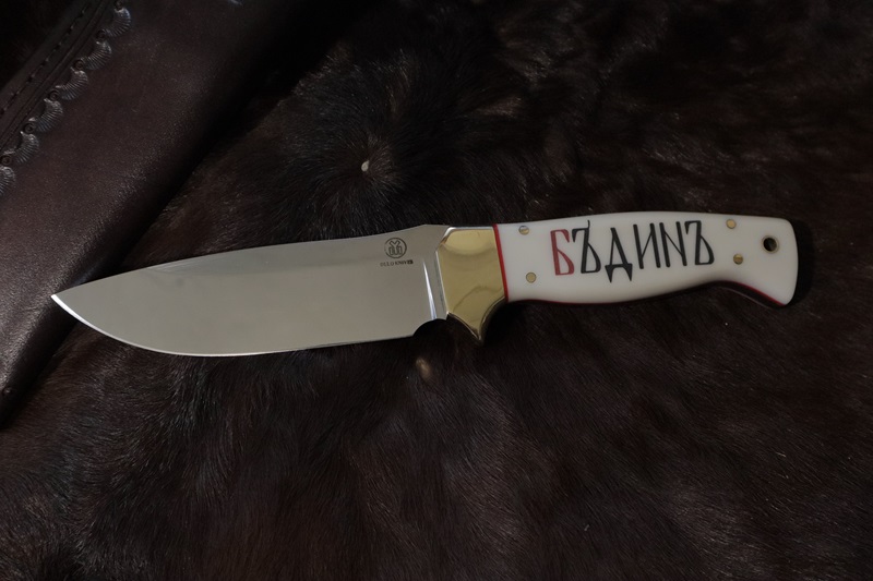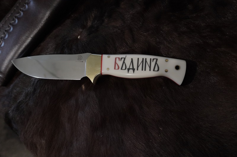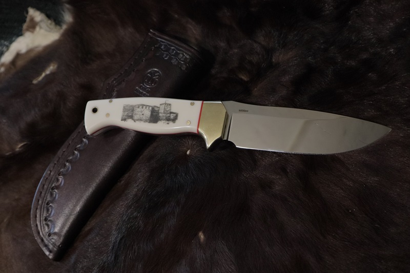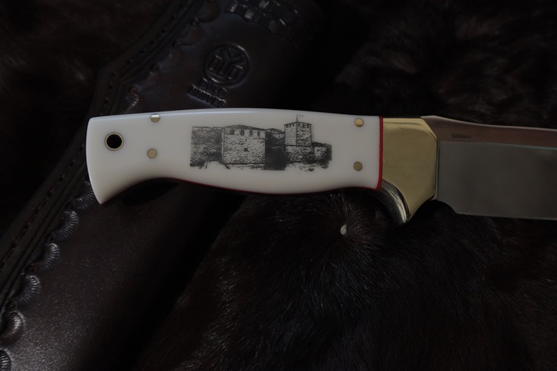 N690co steel 60Hrc; 14 cm - blade; handle 12.5 cm.- corian, leather sheath. engraving Vasil Nikolov US customers should pay 15% of the price before shipping, due to two newly added taxes between the US and the European Union
